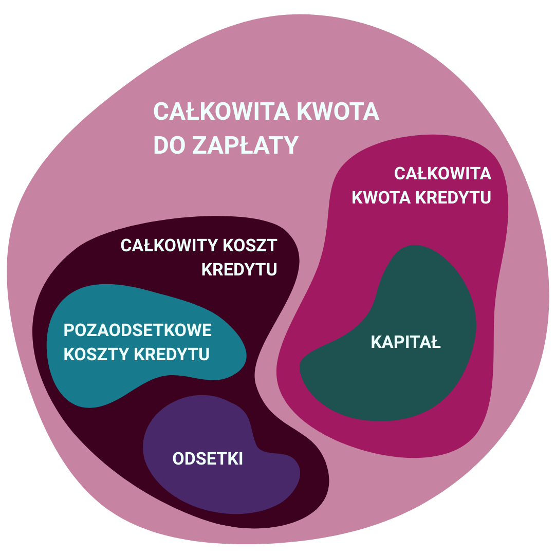 - Całkowity koszt kredytu – to suma wszystkich kosztów, jakie poniesiesz w związku z kredytem – czyli odsetek, prowizji i innych kosztów. Pokazuje, ile więcej oddasz bankowi oprócz pożyczonej kwoty.